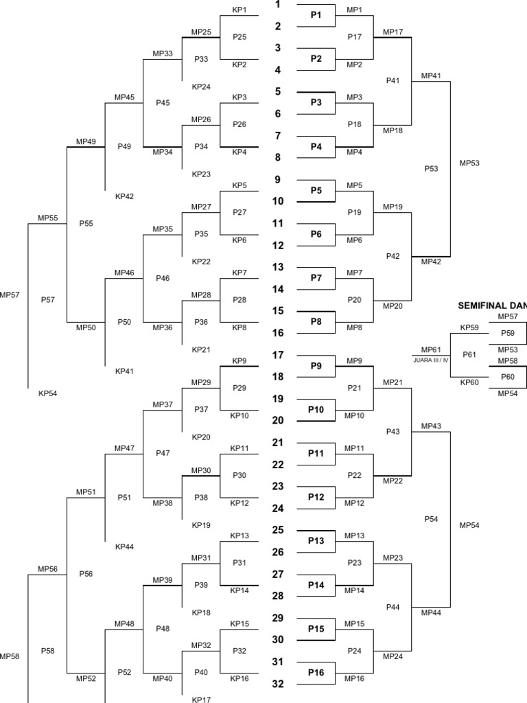 Berikut ini kami tampilkan gambar bagan pertandingan dengan sistem kalah dua kali.